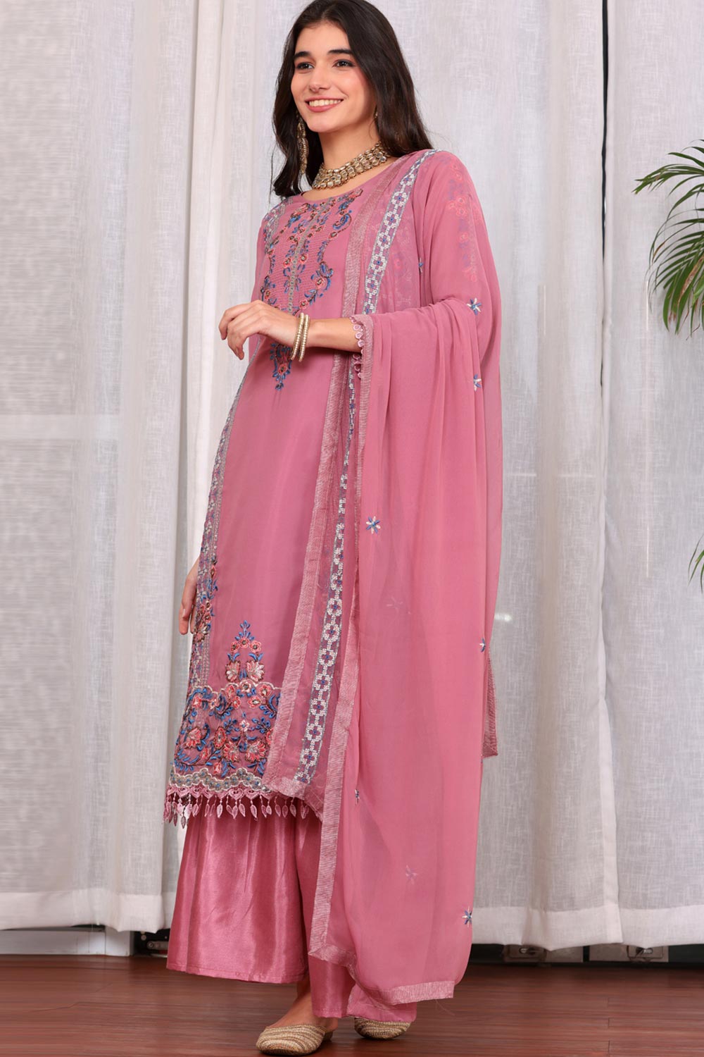 Pink Georgette Embroidered Pakistani Suit
