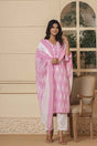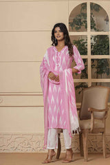 Pink Ikat Print Pure Cotton Kurti Pant Set