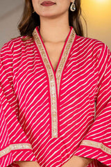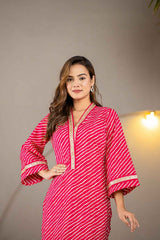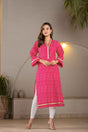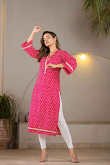 Pink Leheriya Embroidered Pure Cotton Kurti