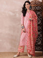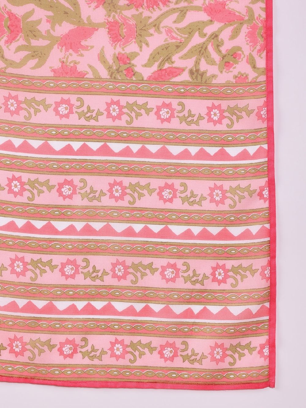 Pink Rayon Blend Floral Printed Straight Kurti Pant With Dupatta
