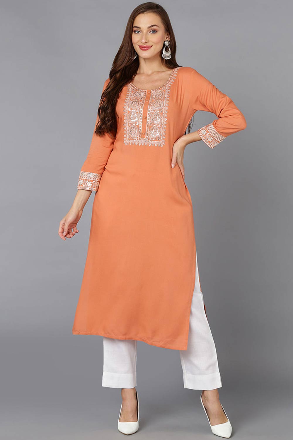 This pink Rayon Floral Print Round Neck Kurti is a timeless choice for any occasion. The intricate prints add a touch of sophistication to the ensemble, while the comfortable rayon fabric ensures effortless elegance and ease throughout the day.