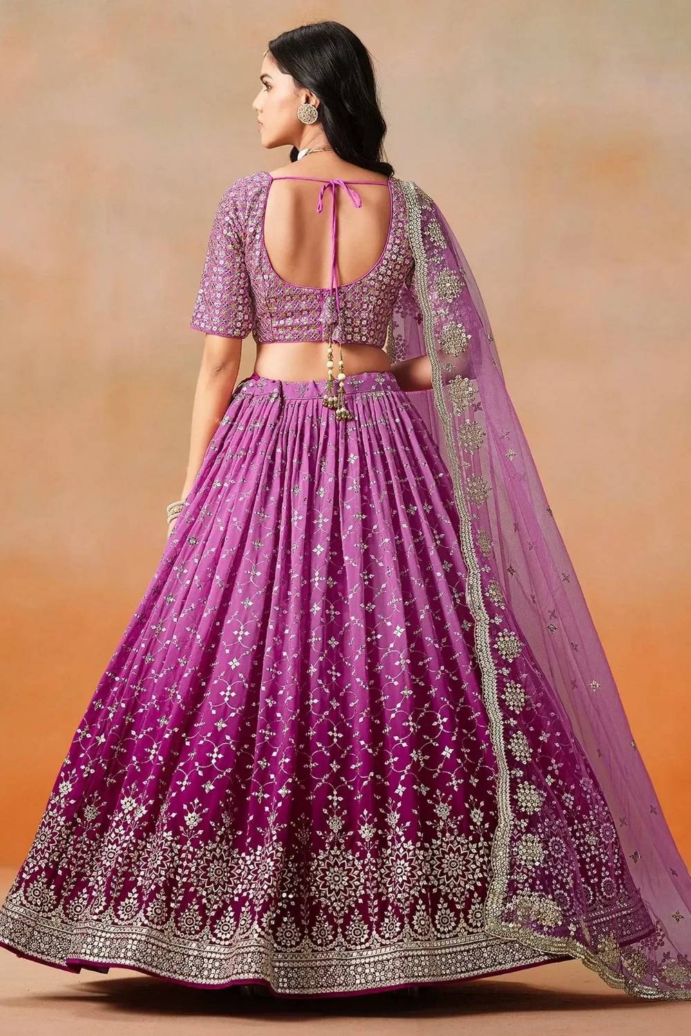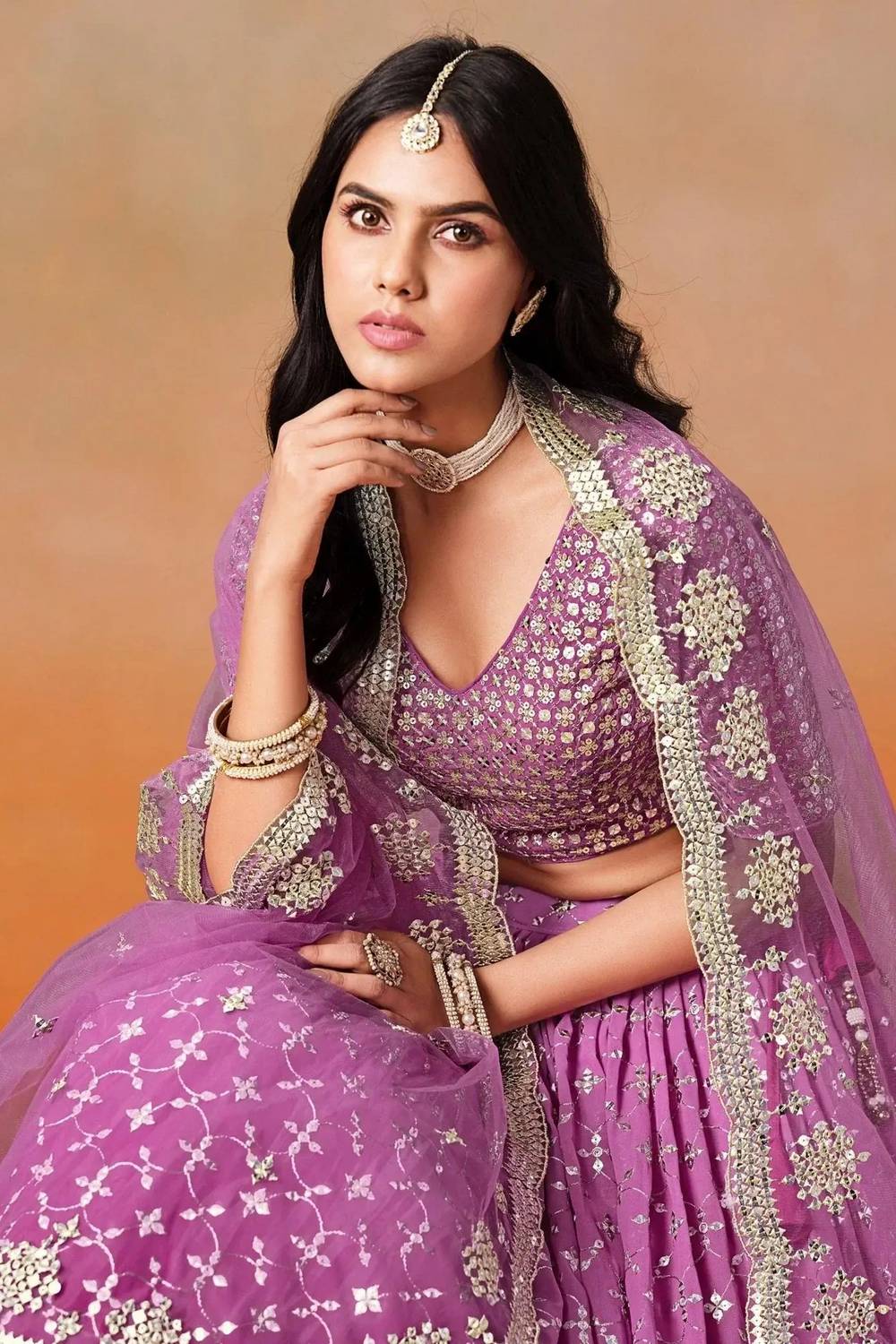 Step into the spotlight with our Lehenga a dazzling creation designed to make your special moments unforgettable. Crafted from premium Georgette this lehenga offers a perfect combination of elegance and ease, keeping you graceful all day long. The exquisite Sequin makes this lehenga a masterpiece of traditional craftsmanship. Whether it’s Sangeet,Mehendi,Reception or a grand celebration, this lehenga is the perfect choice to make a statement. Pair it with an ornate choker, a matching dupatta, and embellished stilettos to complete the regal look. Add a sleek bun or cascading curls for added glamour. Make every moment magical with the timeless allure of Lehenga