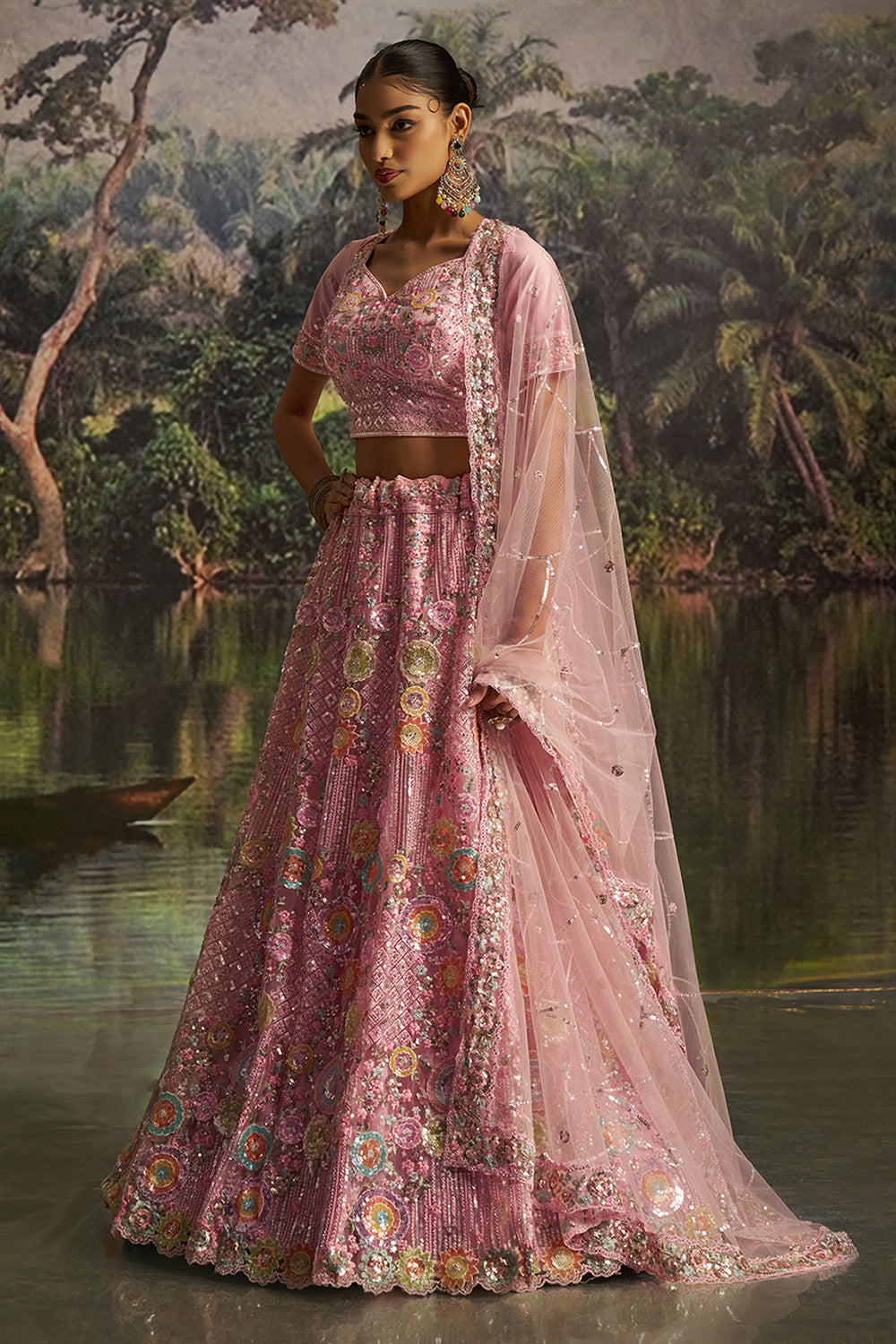Step into the spotlight with our Lehenga a dazzling creation designed to make your special moments unforgettable. Crafted from premium Net this lehenga offers a perfect combination of elegance and ease, keeping you graceful all day long. The exquisite Sequin makes this lehenga a masterpiece of traditional craftsmanship. Whether it’s Engagement,Wedding,Reception or a grand celebration, this lehenga is the perfect choice to make a statement. Pair it with an ornate choker, a matching dupatta, and embellished stilettos to complete the regal look. Add a sleek bun or cascading curls for added glamour. Make every moment magical with the timeless allure of Lehenga