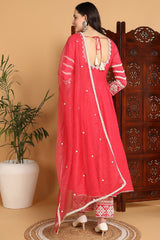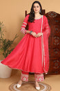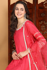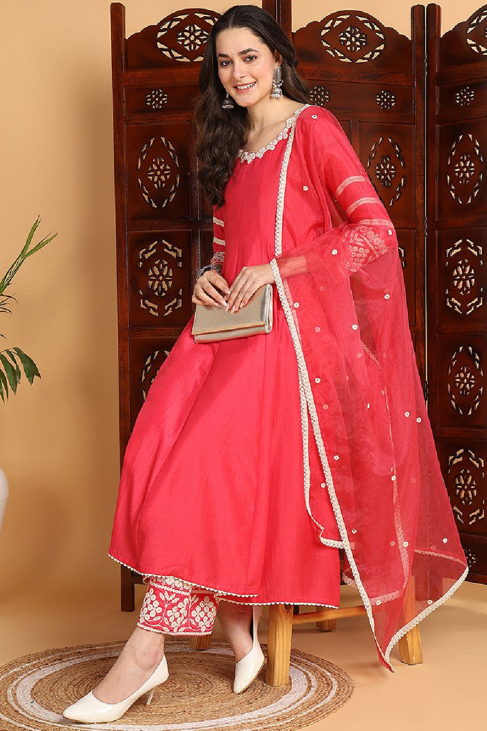 Pink Silk Blend Solid Embroidered Anarkali Suit Set