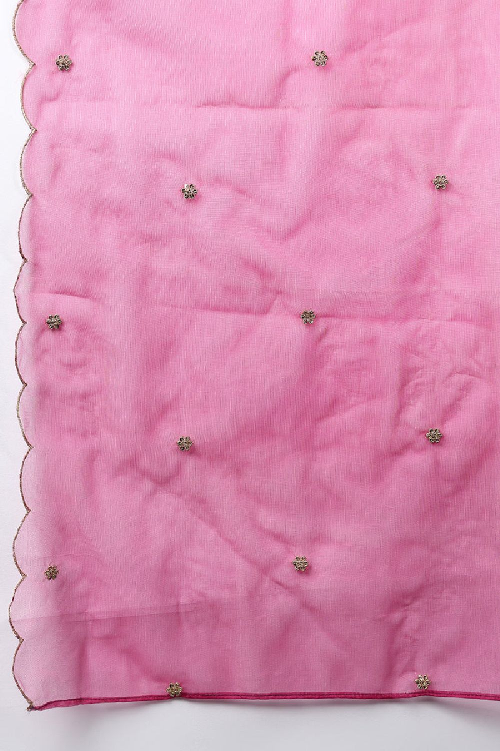 Pink Silk Blend Solid Embroidered Flared Anarkali Suit Set