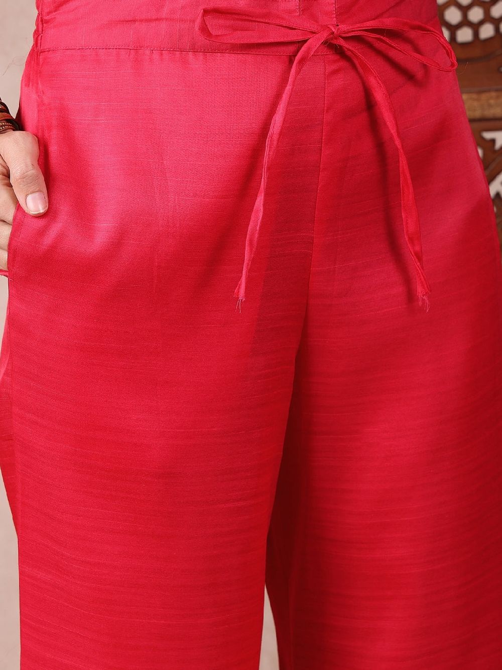 Pink Silk Blend Solid Embroidered Straight Kurti Palazzo With Dupatta