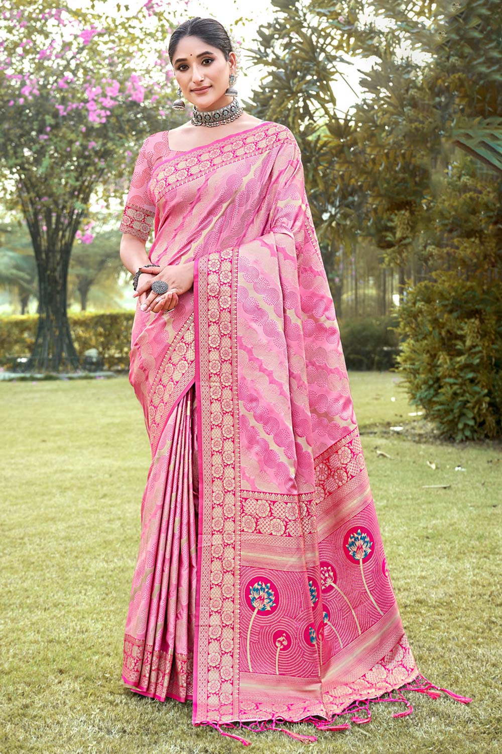 Pink Silk Woven Saree