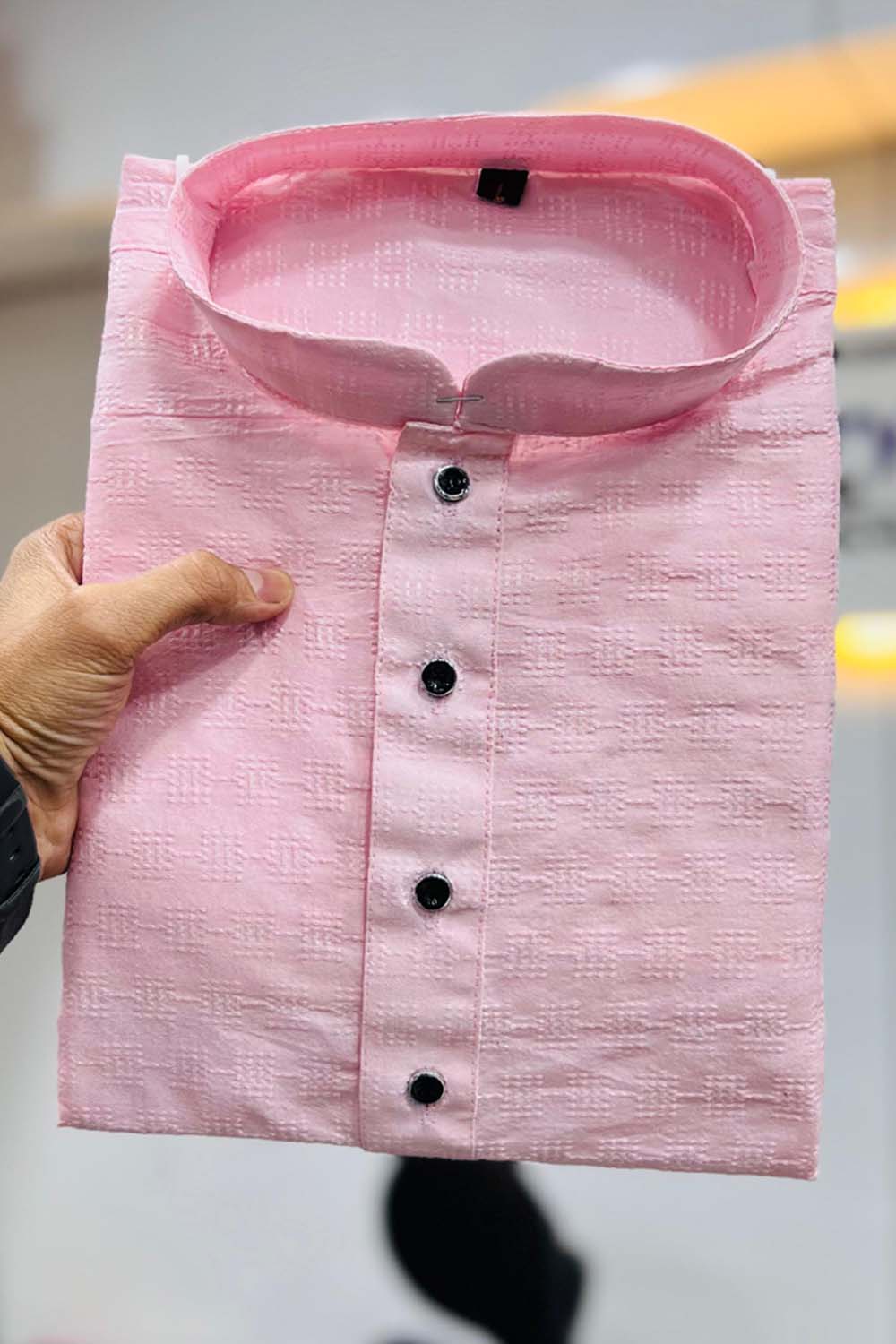 Experience timeless style with our Men's Kurta Set a perfect balance of tradition and modern sophistication. Made from Jacquard this Kurta set offers unmatched comfort and a refined look. Featuring Jacquard and Solid it reflects a rich heritage with a modern touch. Designed for Festivewear this outfit is perfect for special occasion or your celebrations. Complete the look with mojari shoes and a classic watch for a dapper appearance. Make every occasion special with the elegance of Men's Kurta Set