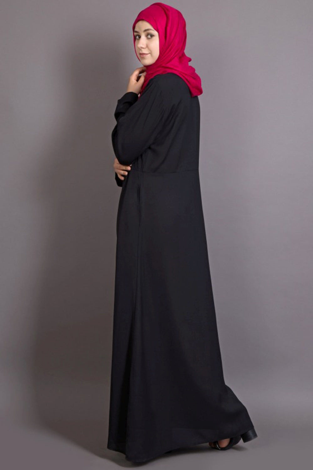 Polyester Solid Abaya In Black