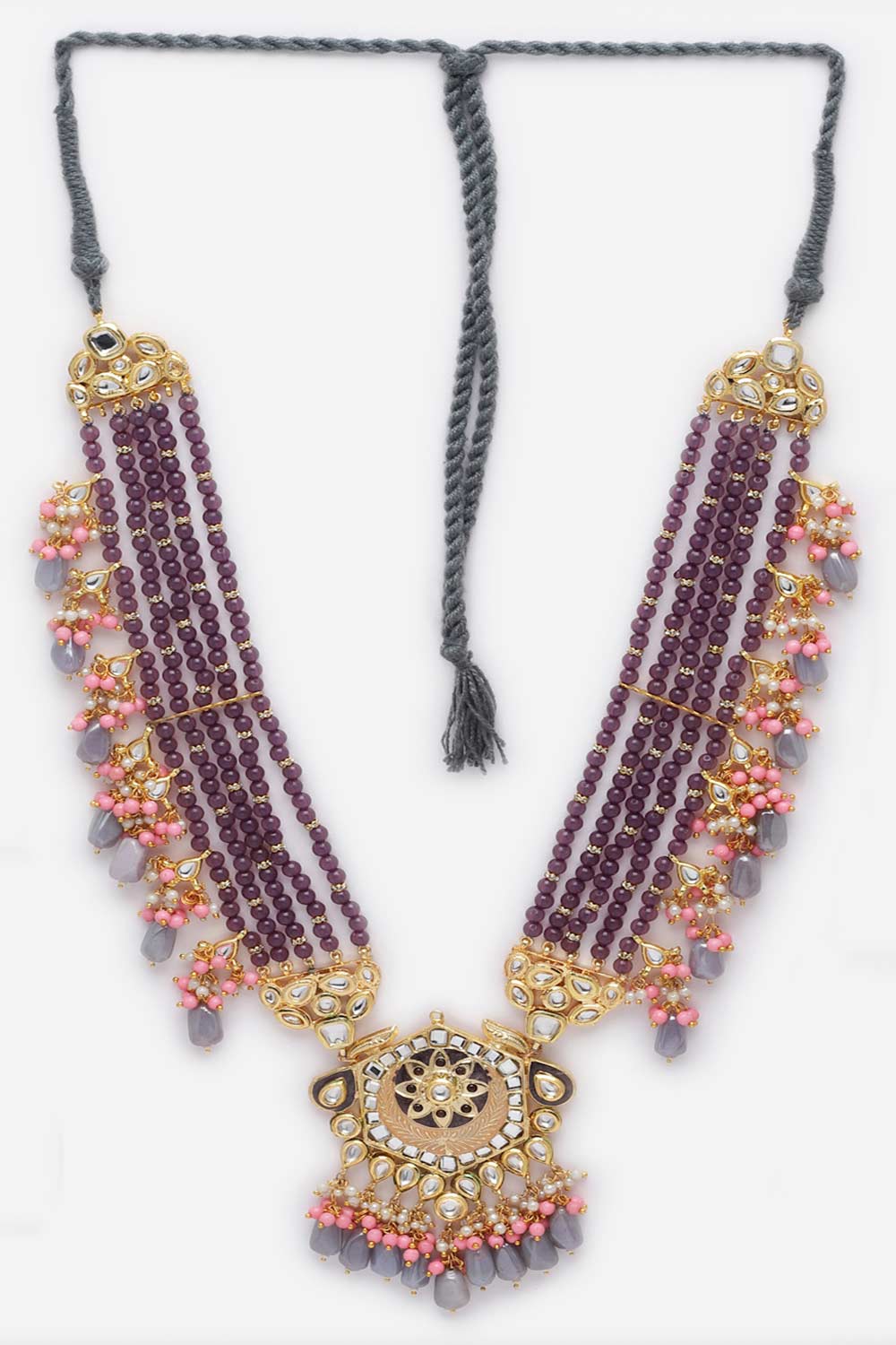 Purple And Pink Kundan And Pearls Haar Necklace