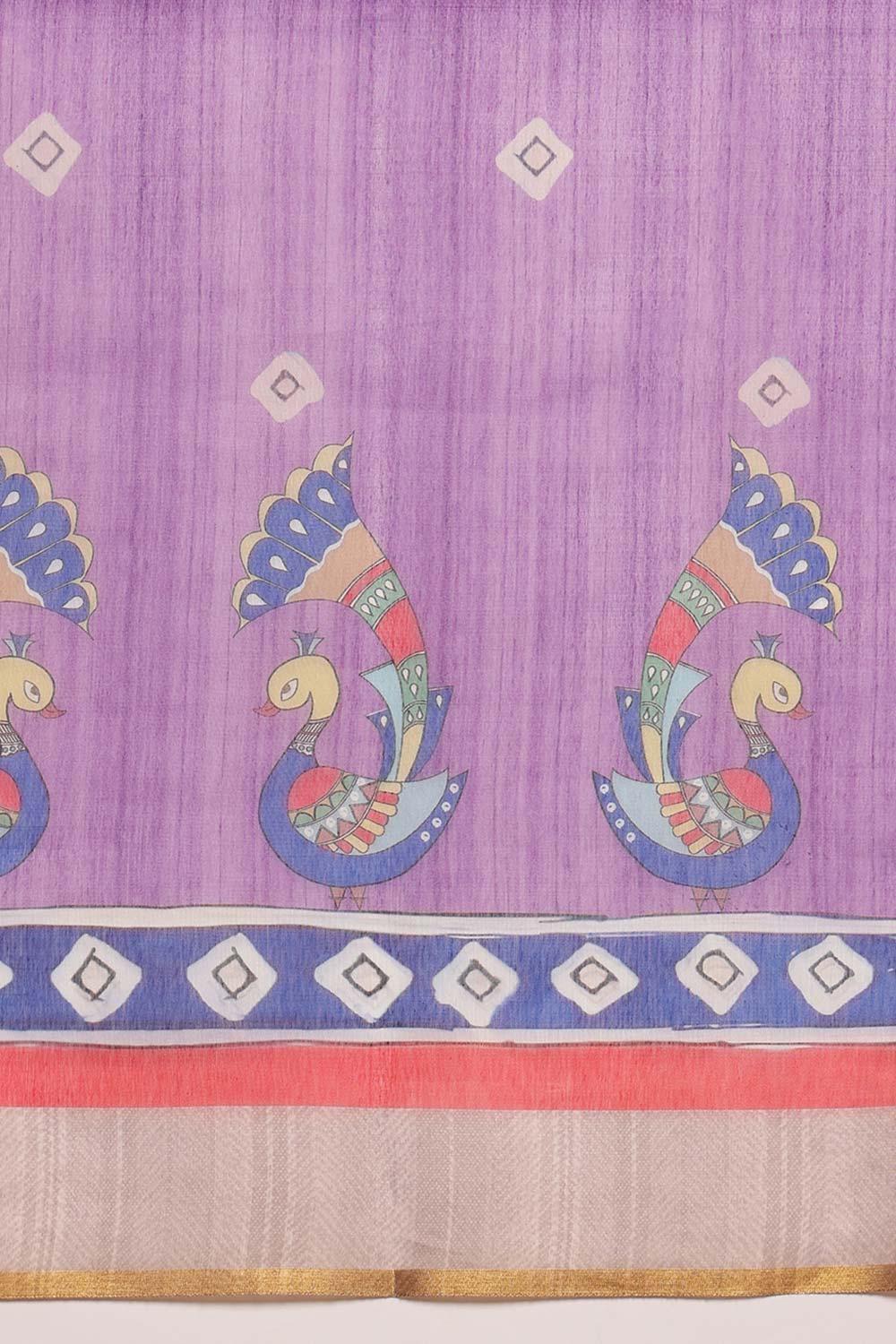 Purple Cotton Blend Printed Madhubani Saree