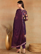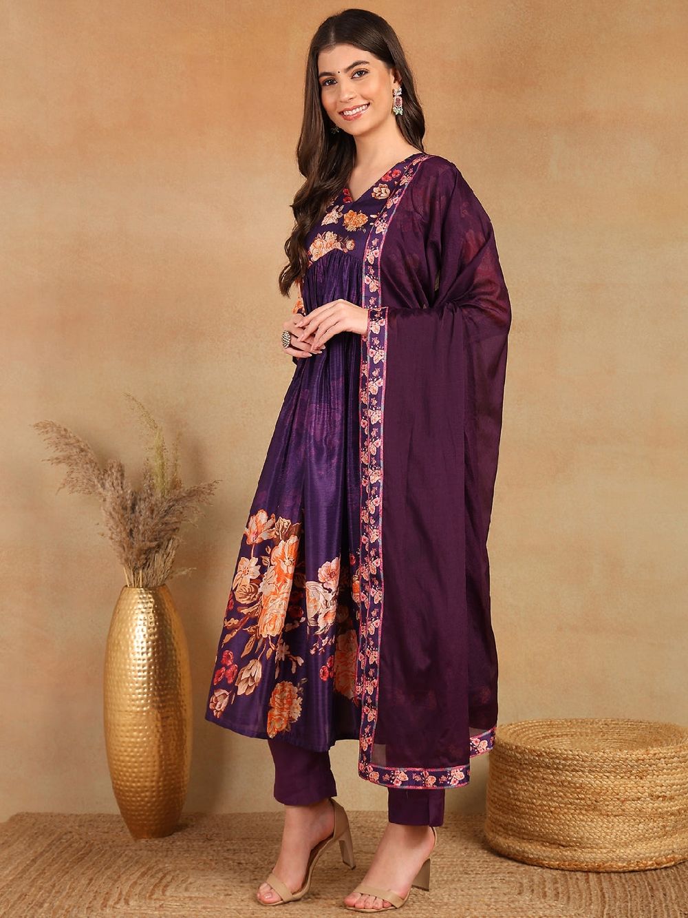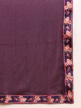 Purple Silk Blend Floral Printed Straight Kurti Pant With Dupatta