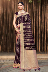 Purple Stain Silk Woven Saree