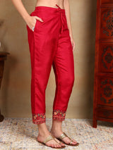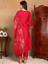 Rani Pink Silk Blend Solid Embroidered Straight Kurti Pant With Dupatta