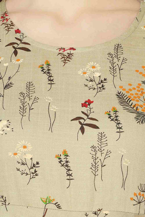 Rayon Floral Dress In Beige