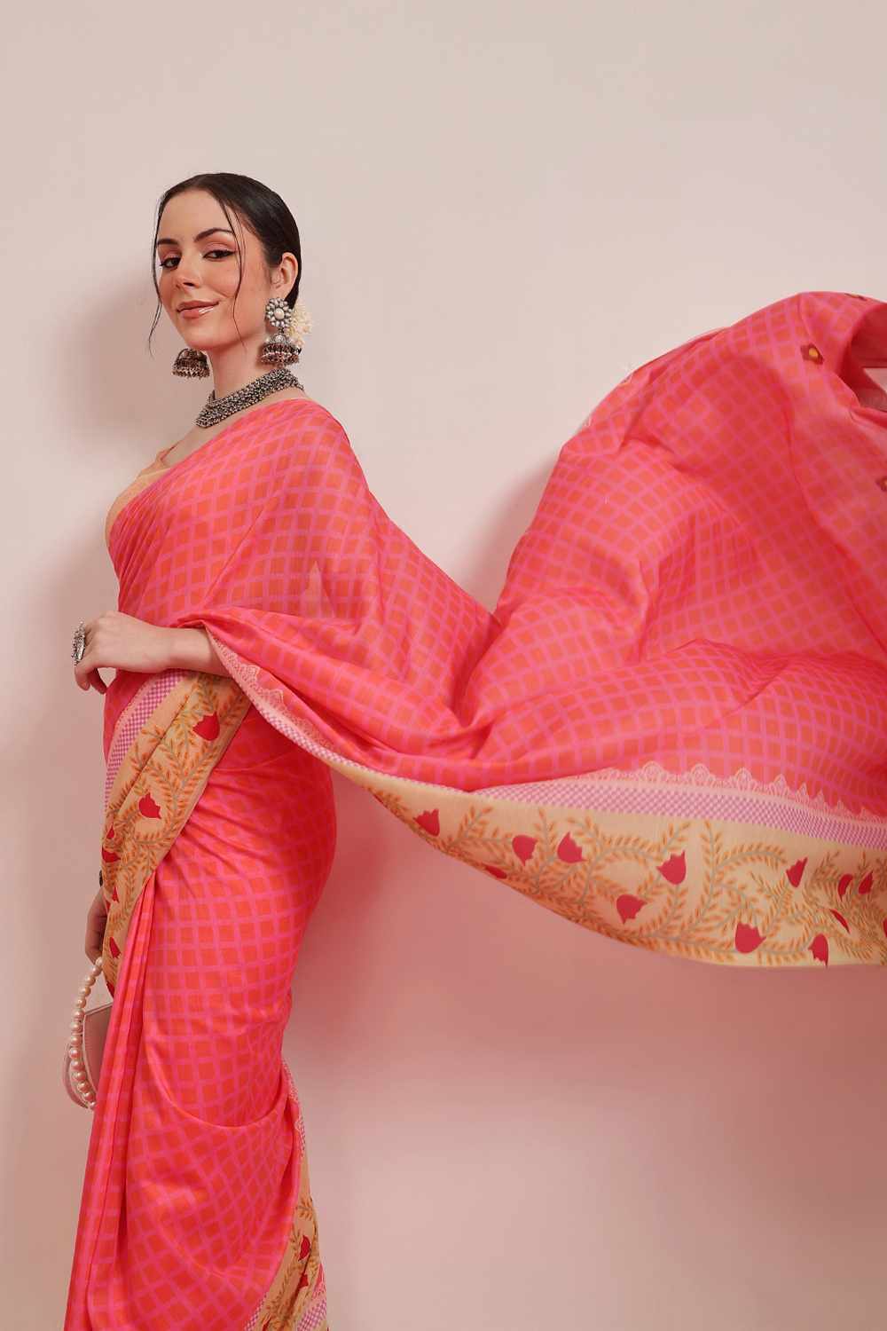 Elevate your wardrobe with our exquisite Saree a masterpiece crafted to add timeless elegance to your style. Made from Cotton this saree offers a perfect mix of comfort and sophistication. Adorned with Abstract Printed it showcases intricate craftsmanship that speaks volumes of tradition and artistry. Perfect for occasion-festivewear,occasion-partywear this saree is a versatile addition to your collection, ensuring you stand out effortlessly. Pair it with elegant Jewelry, for a glamorous look. Add Clutches or Potli Bags and complete the ensemble with Wedges & Heels , making it a perfect choice for any event. Make a statement and embrace the elegance of Saree today