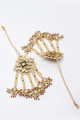 Red And White Gold-Plated Kundan And Pearls Dangler Earring