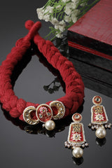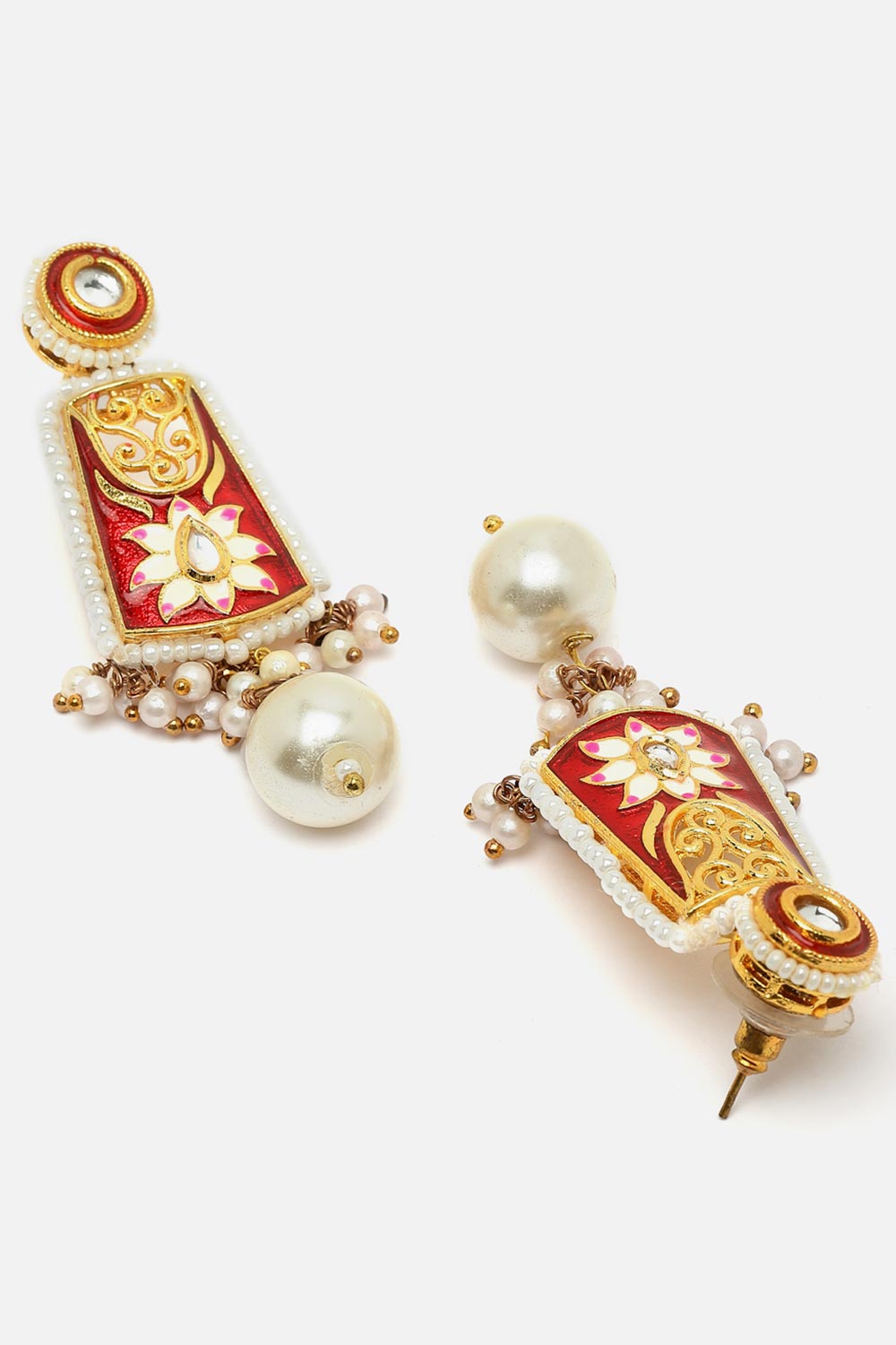 Red And White Necklace With Earring Jeweler Set Kundan And Pearls