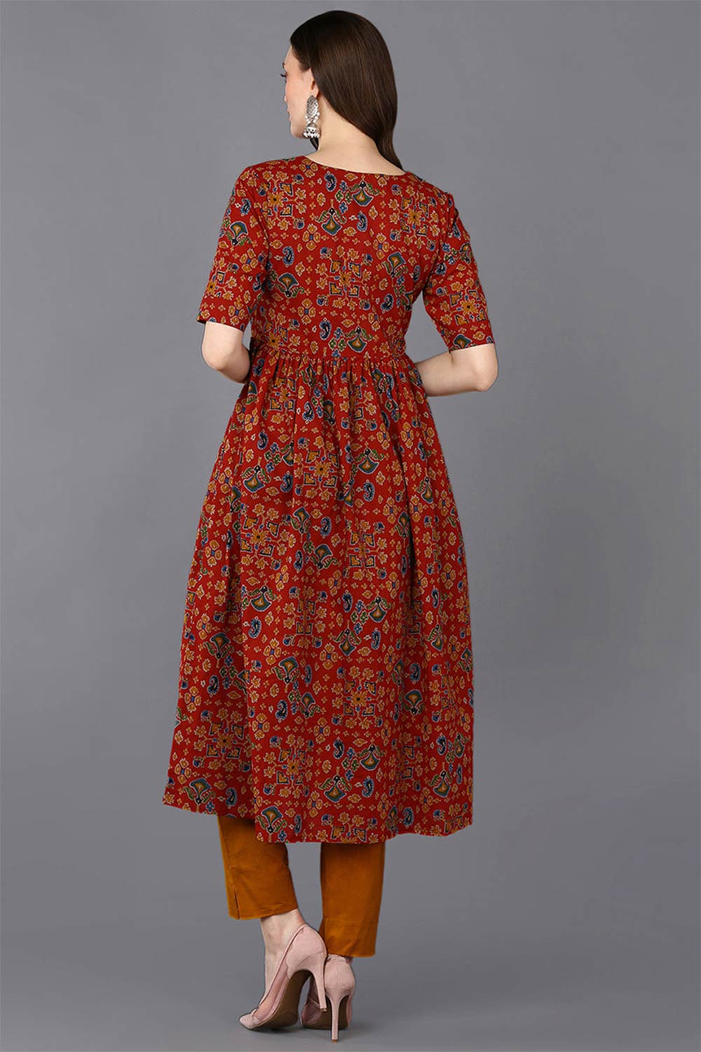 This Red Cotton Bandhani Round Neck Kurti is a timeless choice for any occasion. The intricate prints add a touch of sophistication to the ensemble, while the comfortable rayon fabric ensures effortless elegance and ease throughout the day.