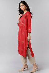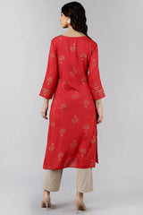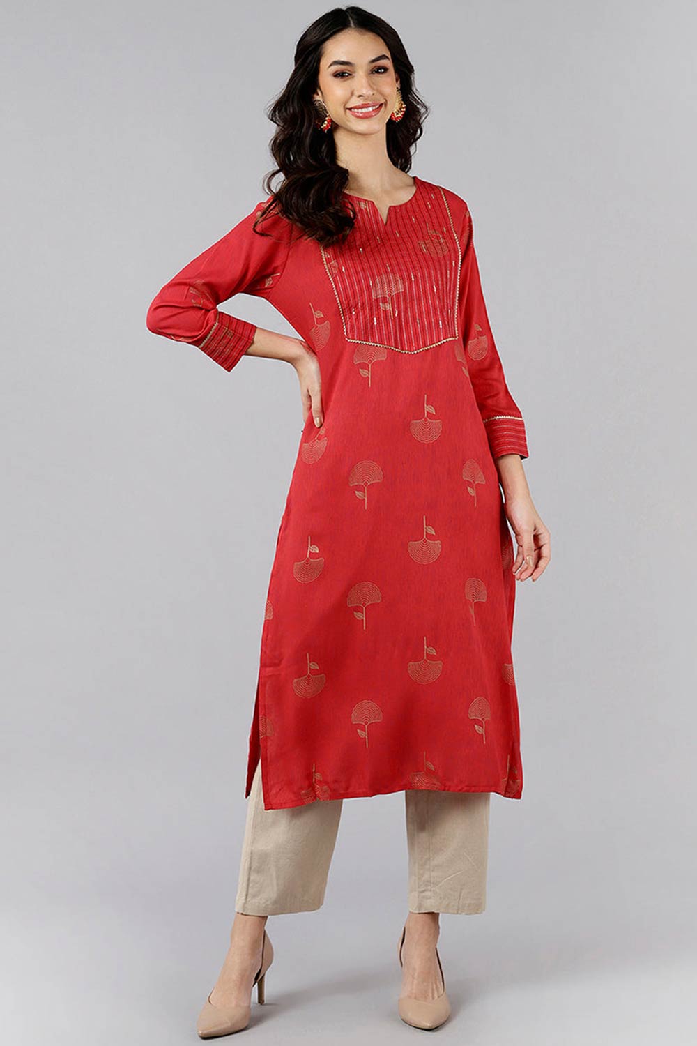 This Red Cotton Round Neck Kurti is a timeless choice for any occasion. The intricate prints add a touch of sophistication to the ensemble, while the comfortable rayon fabric ensures effortless elegance and ease throughout the day.