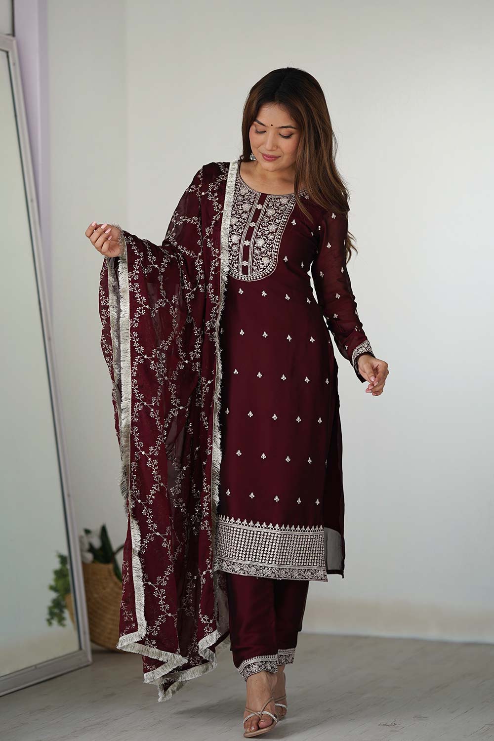 Step into effortless style with our Kurti with Pant crafted for the modern woman who cherishes their Special occasion. Made from soft Georgette it keeps you comfortable all day long. The Embroidered on the design lends a touch of sophistication to your outfit. Perfect for Festivewear this Gown is a must-have for versatile styling options. Style it with minimalistic accessories and flats for a casual look or jewelry and heels for special events