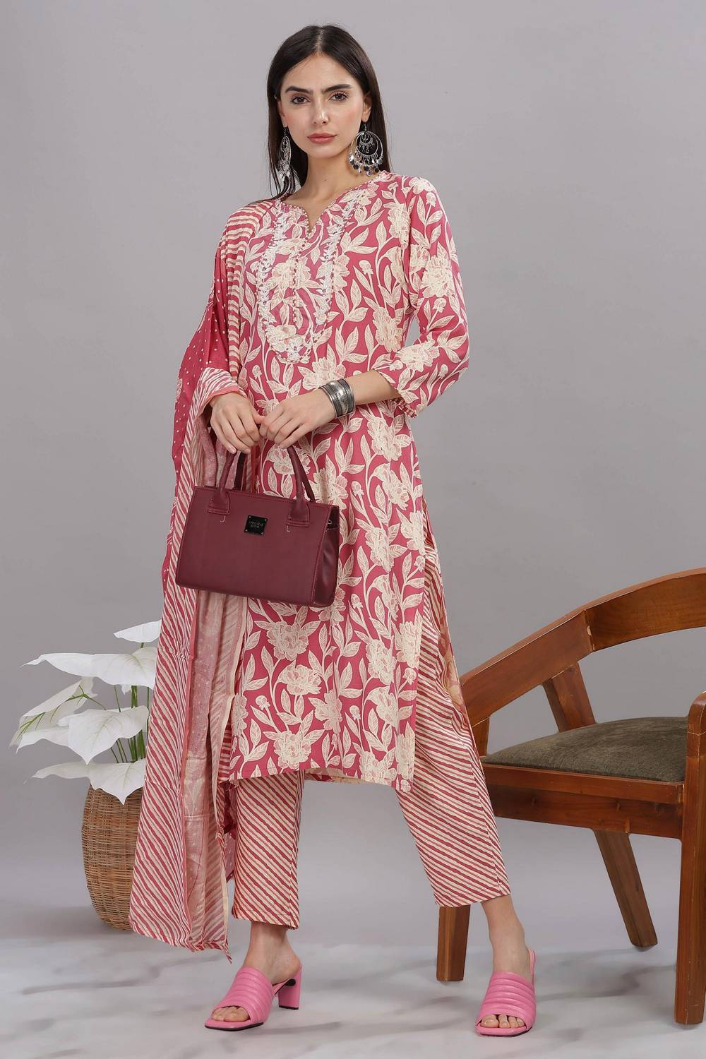 Stay stylish and comfortable with our Kurti Pant Set designed for all-day elegance. Made with Rayon this set is perfect for easy movement and timeless appeal. The beautiful and intricate Floral Printed elevates its design for Casual or daily wear, this kurti set is your go-to outfit. Pair it with elegant earrings and kolhapuri sandals or heels for a traditional look or wedges for a modern edge