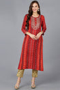Red Rayon Embroidered Round Neck Kurti