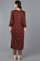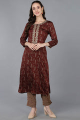 This Red Silk Blend Embroidered Round Neck Kurti is a timeless choice for any occasion. The intricate prints add a touch of sophistication to the ensemble, while the comfortable rayon fabric ensures effortless elegance and ease throughout the day.