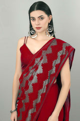 Unleash your inner diva with this Red Silk Embroidered Saree , adorned with delicate embroidery.