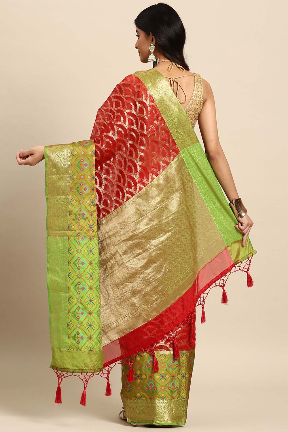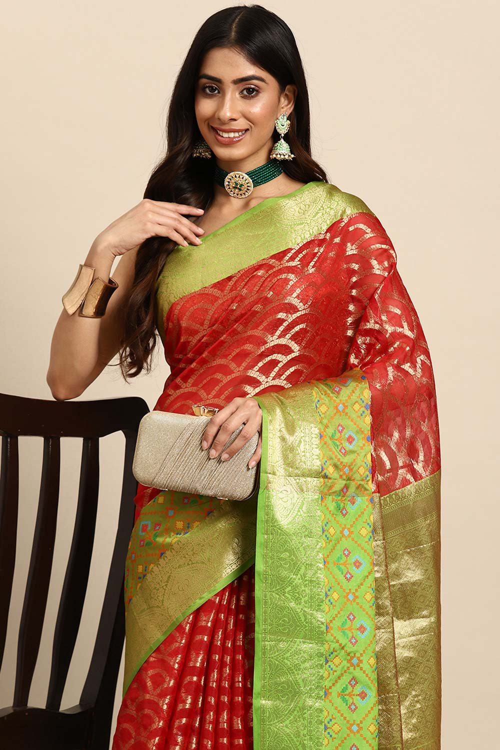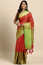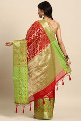 Elegance and Grace both the words are perfect for this beautifuly heavy designer saree that specially designed for the Wedding season, Over a Pallu Ikkat design are there.This saree is from Silk Land on Karma Place.