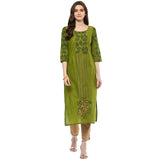 Blended Cotton Printed Kurti Top In Green