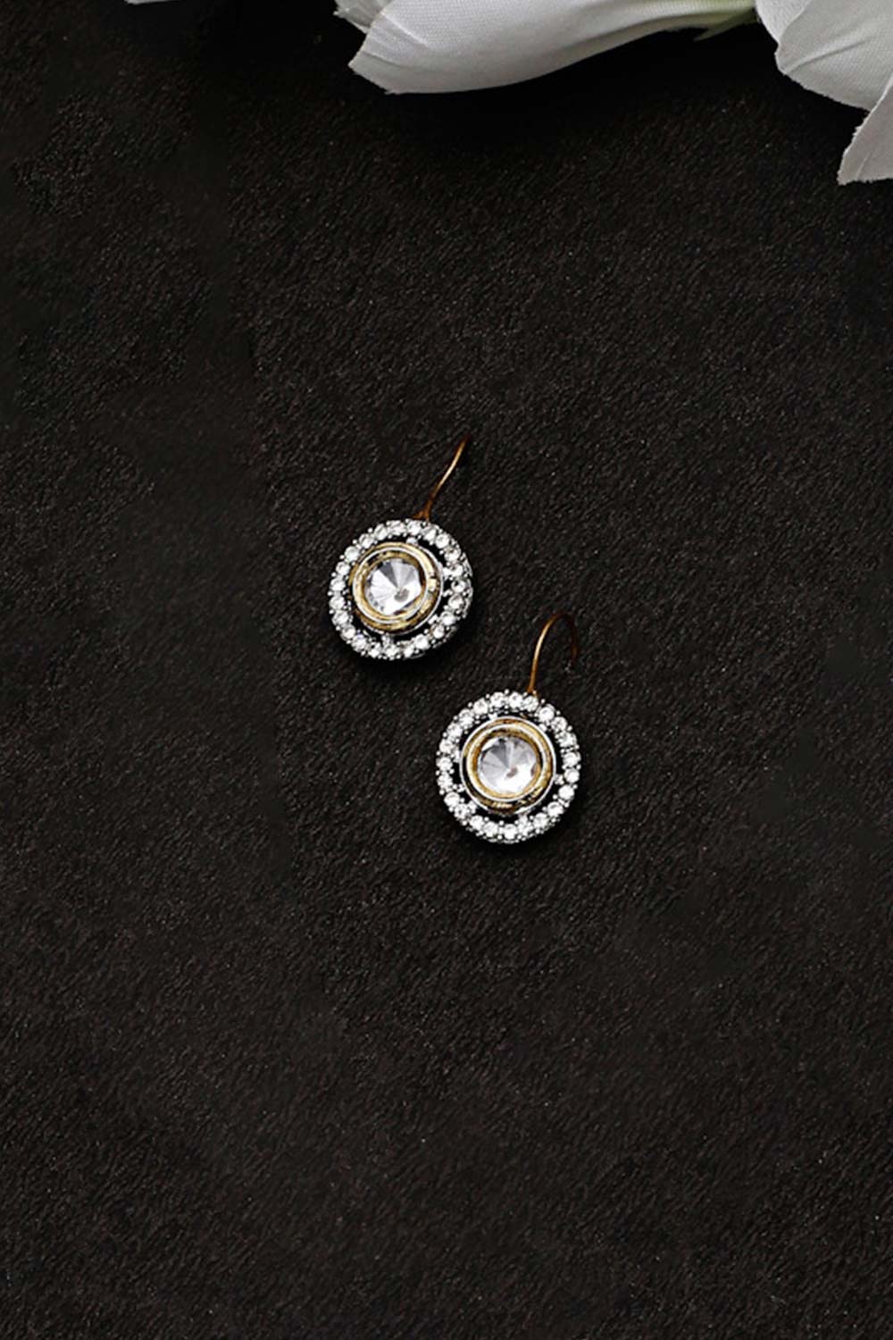 Silver And Gold Drop Earring With Kundan And American Diamonds