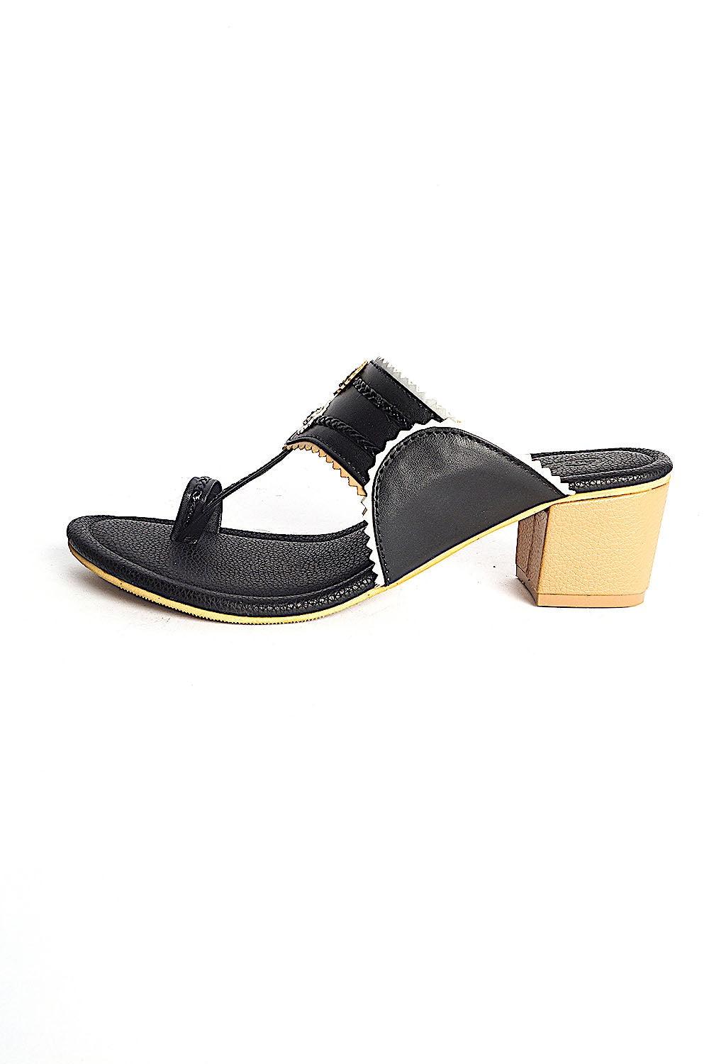 Black Vegan Leather with, Nude and Grey Filigree Cutting, Black Braiding with 2 Inch Nude Block Heel