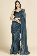 Teal Fancy Fabric Sequins Work Party Wear Designer Saree