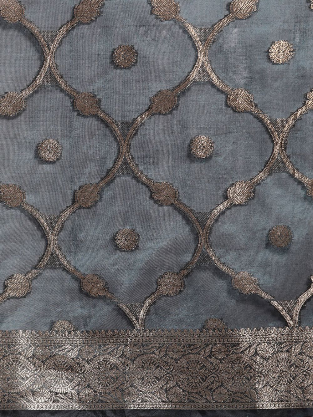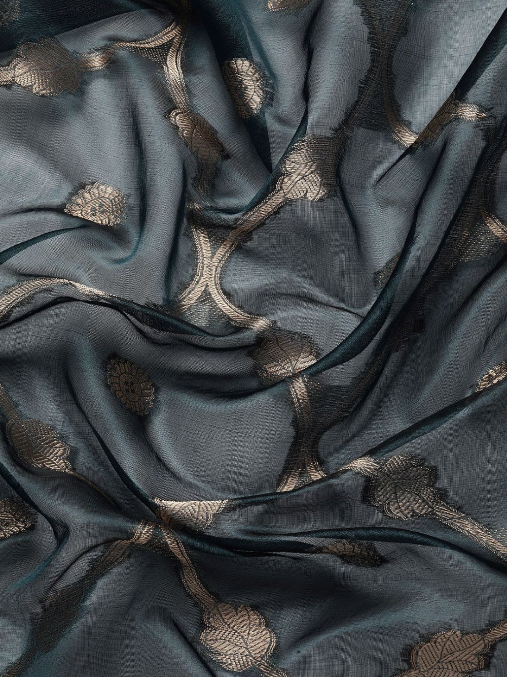Teal Organza Silk Floral Saree