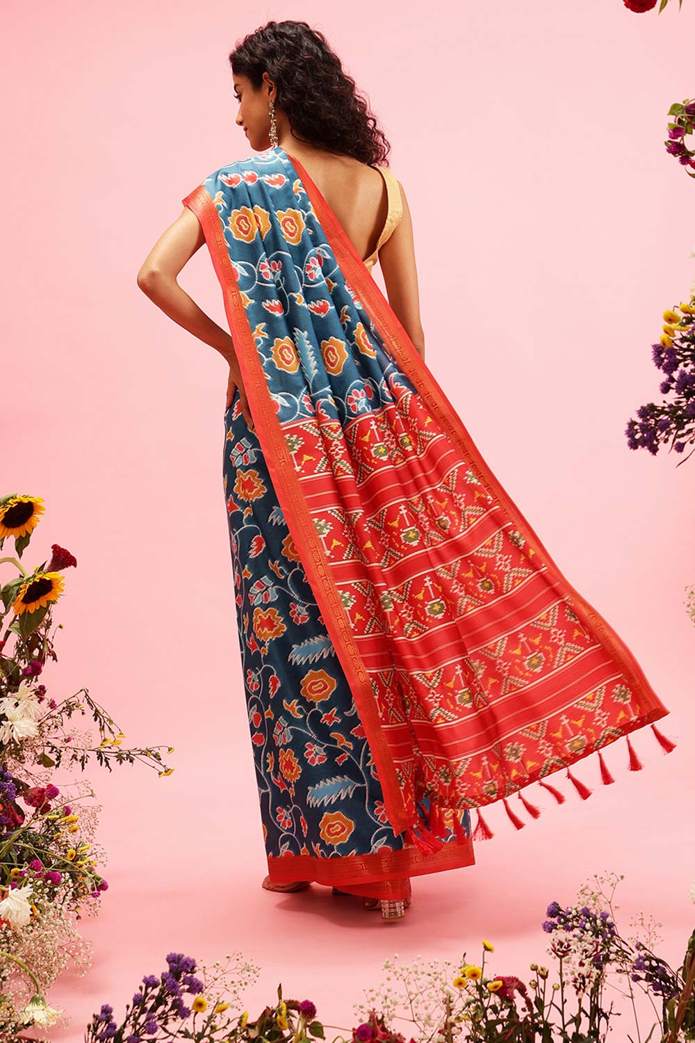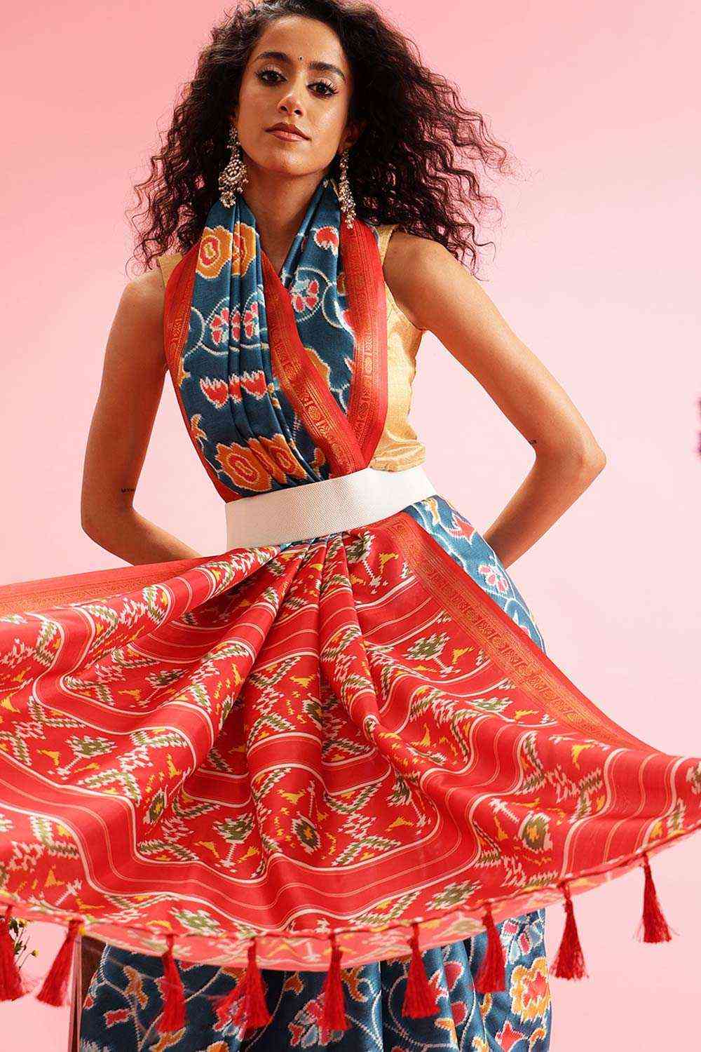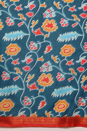 Discover the beauty of this Teal Soft Silk Digital Print Pochampally Saree , highlighted by exquisite woven designs that blend traditional craftsmanship with modern elegance.