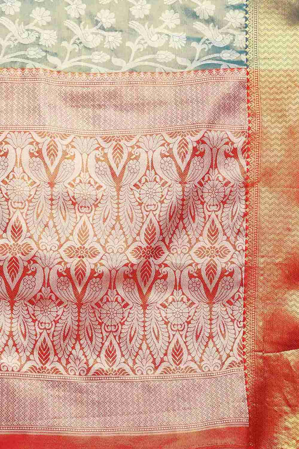 This brocade heavy zari saree is must in your wardrobe for the festive and wedding wear is from Silk Land on Karma Place. It has a floral design weave with zari thread.