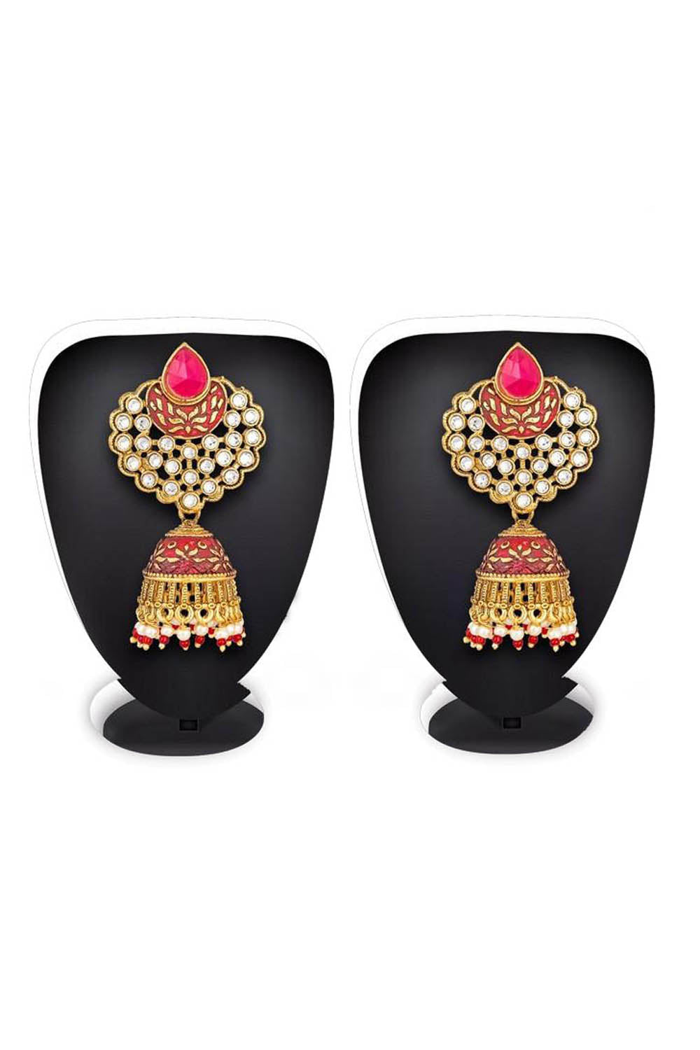Women's Alloy Jhumka Earrings In Gold And Red