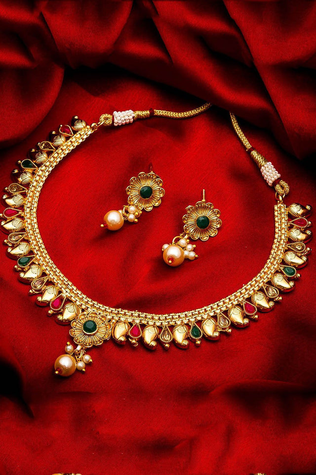 Women's Alloy Necklace And Earrings Set In Gold