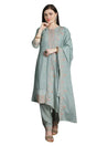 Turquoise Chinon Chiffon Embroidered Dress Material