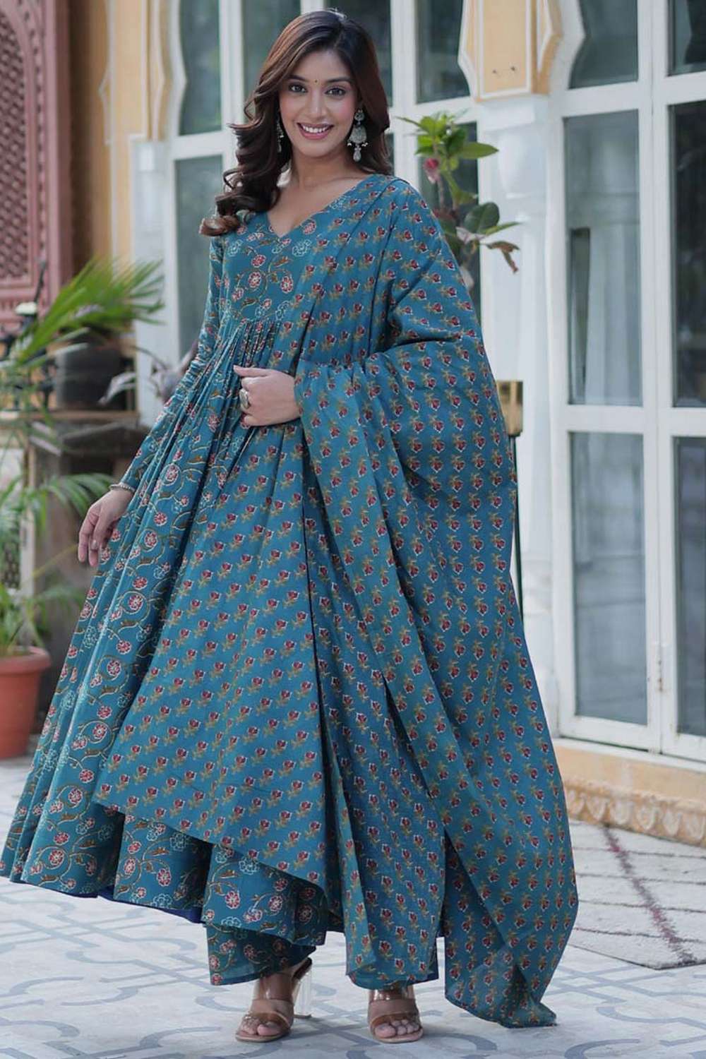 Step into effortless style with our Anarkali crafted for the modern woman who cherishes their Special occasion. Made from soft Cotton it keeps you comfortable all day long. The Floral Printed design lends a touch of sophistication to your outfit. Perfect for Casual this Gown is a must-have for versatile styling options. Style it with minimalistic accessories and flats for a casual look or jewelry and heels for special events