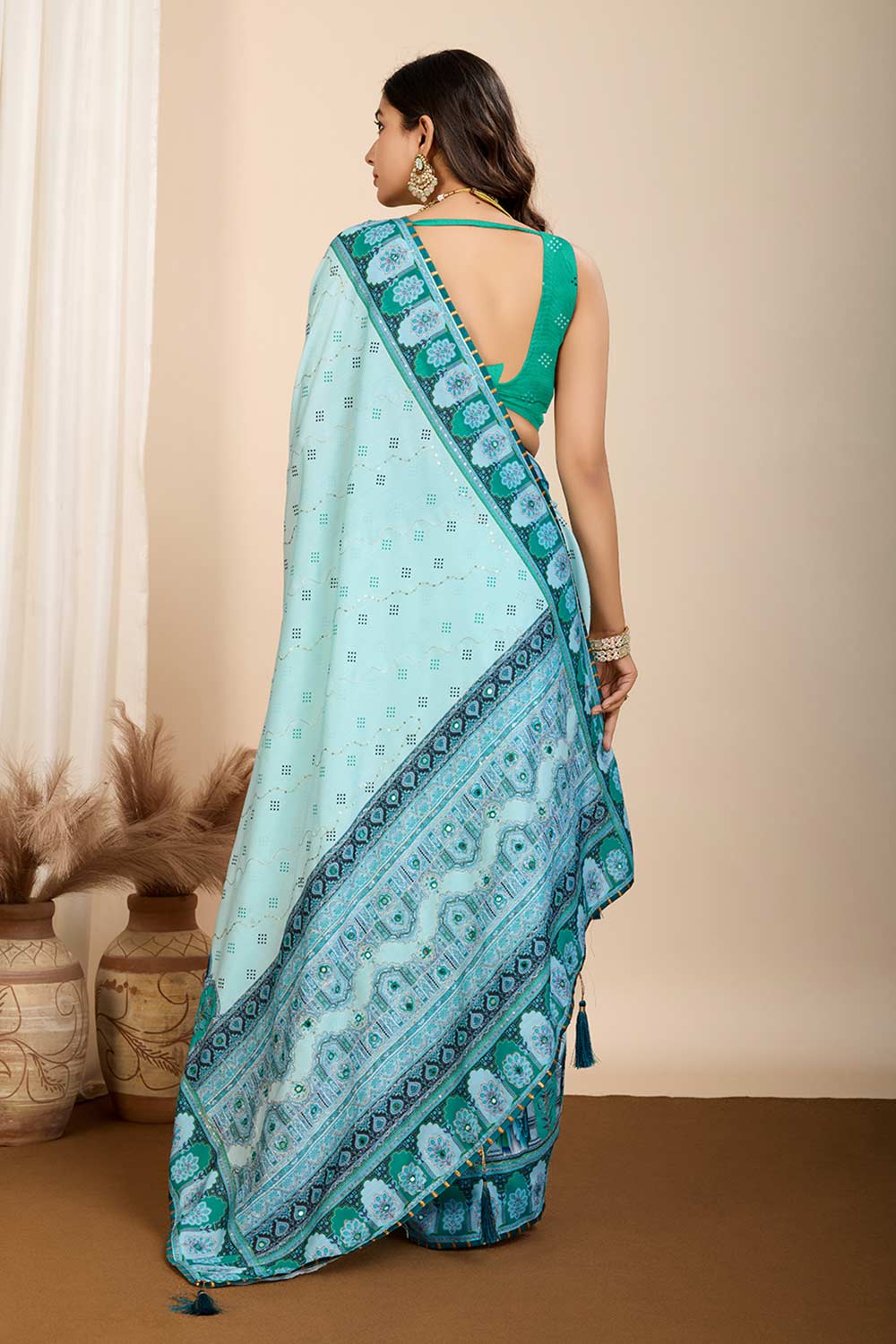 Elevate your wardrobe with our exquisite Saree, a masterpiece crafted to add timeless elegance to your style. Made from Muslin this saree offers a perfect mix of comfort and sophistication. Adorned with Printed it showcases intricate craftsmanship that speaks volumes of tradition and artistry. Perfect for Partywear this saree is a versatile addition to your collection, ensuring you stand out effortlessly. Pair it with elegant Jewelry, such as for a glamorous look. Add a Clutches or Potli Bags and complete the ensemble with Wedges & Heels , making it a perfect choice for any event. Make a statement and embrace the elegance of Saree today