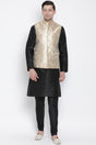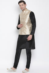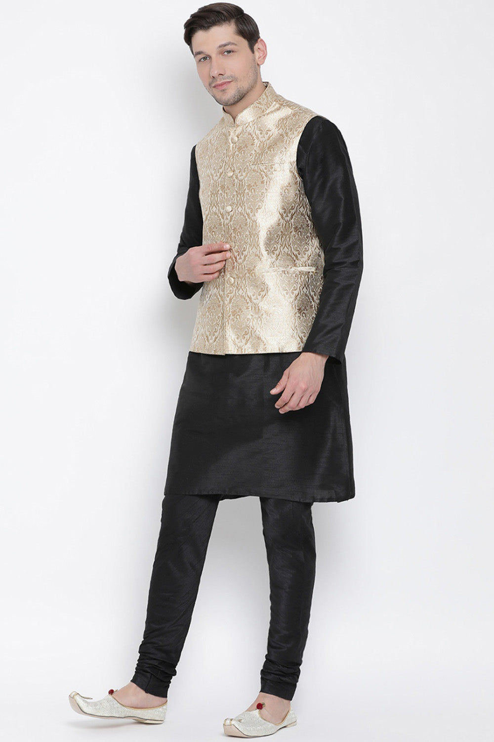 Men's Cotton Silk Jacket Kurta Pyjama Set in Black