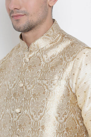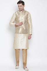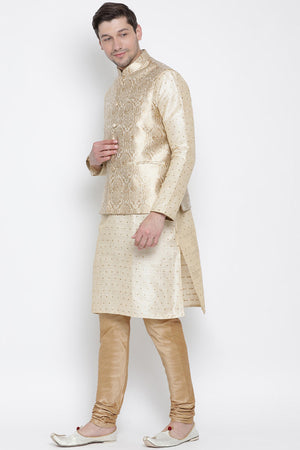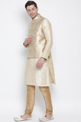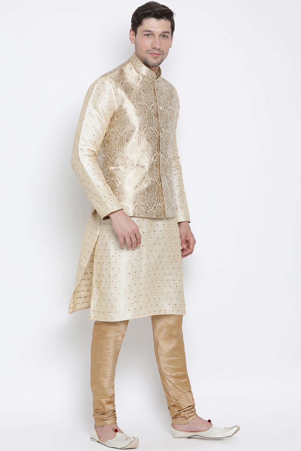 Men's Cotton Silk Jacket Kurta Pyjama Set in Gold
