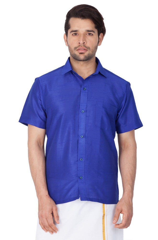 Vastramay brings to you this Stylish yet Comfortable Men Royal Blue Ethnic South Indian Shirt. Adorn it for a perfect Classy and Trendy look. These Shirts are usually very popular in Souther part of the Sub Continent. These are also called Madras Shirt. It is worn along with a trouser or a jeans. However, traditionally it is paired with a Veshti or a white dhoti. The set is also called as Shirt Vesty.