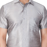 Men's Cotton Art Silk Solid Ethnic Shirt In Grey