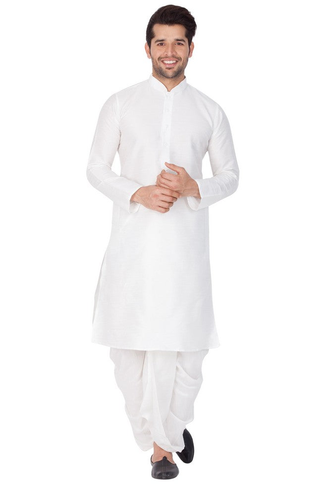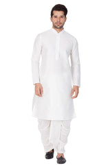 Men's Cotton Art Silk Solid Kurta And Dhoti Pant Set In White