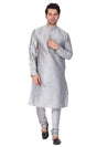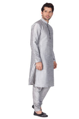 Men's Cotton Art Silk Solid Kurta And Pajama Set In Grey