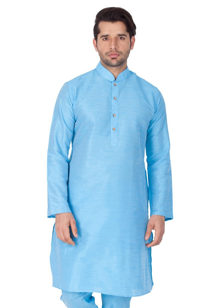 Men's Cotton Art Silk Solid Kurta In Light Blue
