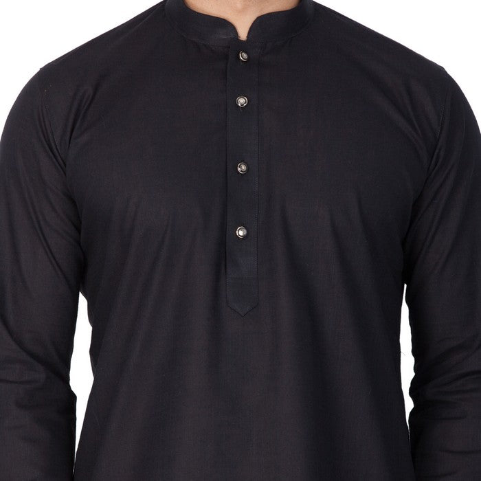 Vastramay brings to you this Stylish yet Comfortable Men Black Men Linen Cotton Plain Black Kurta and Churidar Pyjama Set. Adorn it for a perfect Classy and Trendy look. Pair it with a juti or a mojari for the Royal look.